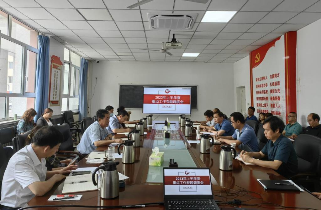 7月13日,我校召開了2023年上半年度重點工作專題調度會,聽取各部門重點工作匯報,安排部署下一步工作。學校領導班子全體成員出席會議,各部門負責人參加會議。會議由校長段潤保主持,黨委書記籍獻平作總結講話。