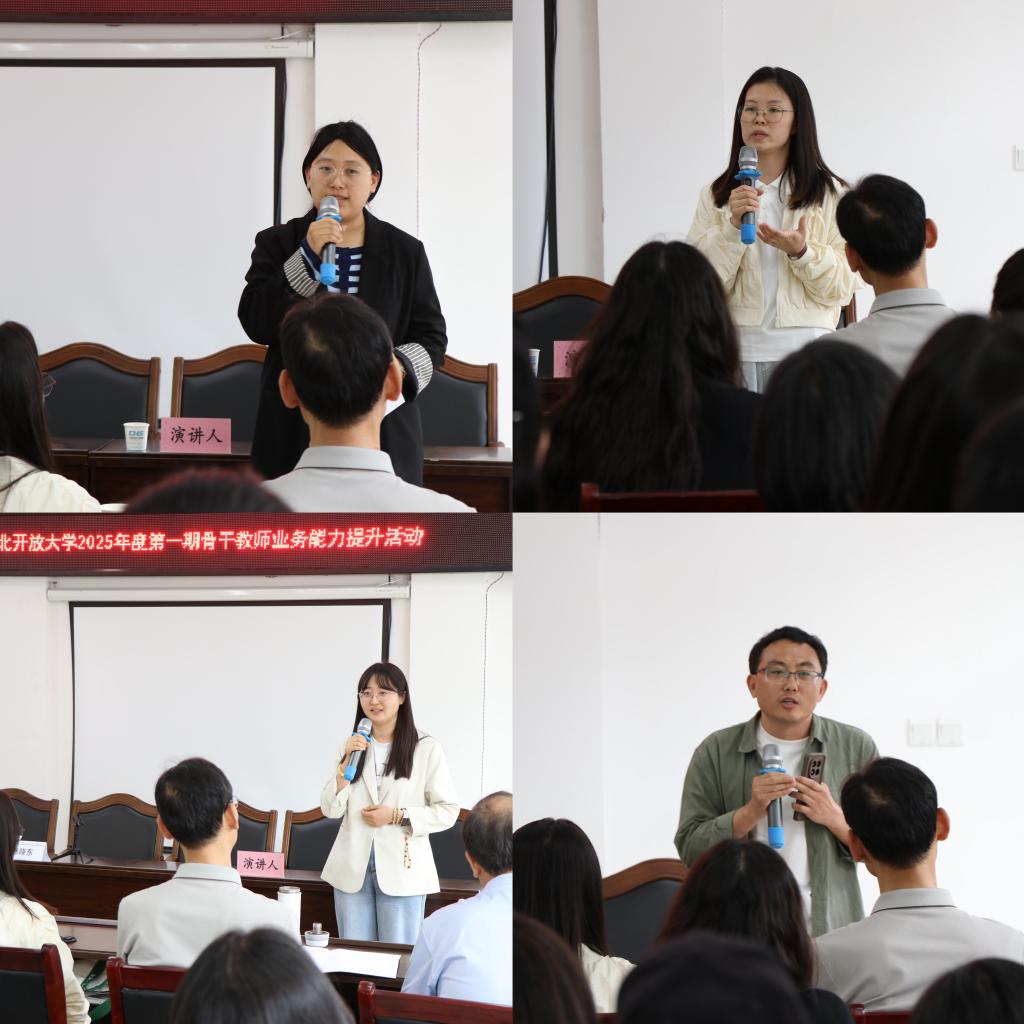 結業式上,承德開放大學教師張澤、保定開放大學教師李欣、省校農醫學院教師趙慧月、衡水開放大學教師薛魁中作為學員代表進行了交流發言。