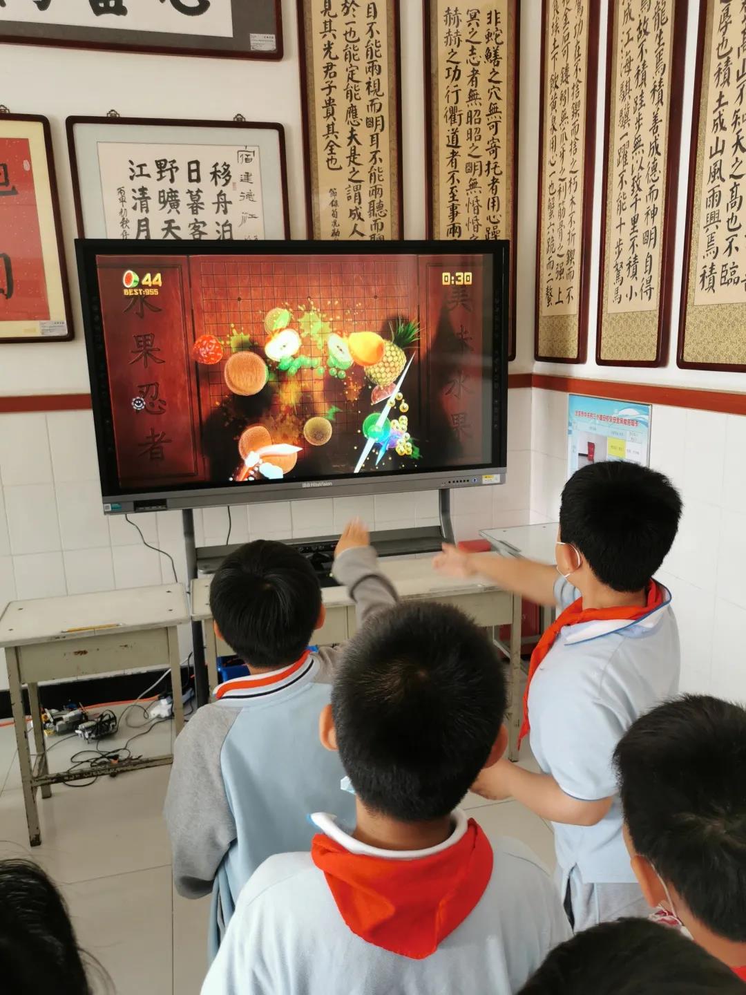 老師們帶來了利用傳感器制作的各種智能體感游戲和用電子芯片控制的科技作品,這些作品都是蝸牛漫步的小學員們利用激光切割機、小車床等工具制作完成,并通過編程軟件控制其中的電子芯片,使其發聲、發光或者進行軌跡運動。還有用積木零件搭建完成的各種小車,利用程序控制小車完成前進、后退、左右轉彎、撿球、投球等功能。