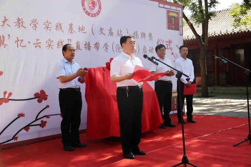 6月4日上午,滄州電大教學(xué)實(shí)踐基地(文廟站)揭牌儀式在滄州文廟舉行,“紅色“冀”憶·云實(shí)踐”直播帶學(xué)(滄州站)活動(dòng)同時(shí)啟動(dòng)。滄州電大黨委副書記、校長崔學(xué)強(qiáng),滄州市文化廣電和旅游局黨組成員、副局長翟成剛出席儀式并為教學(xué)實(shí)踐基地揭牌,翟成剛副局長和滄州電大黨委委員、副校長劉俊民分別在儀式上致辭,滄州電大教研室主任姚小林主持儀式。
