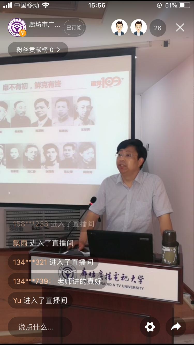 此次黨史宣講是廊坊電大首場達人直播帶學活動,也是第一次運用新媒體手段開展成人學生思想政治教育的新探索、新實踐。本次直播時長約120分鐘,截止直播結束時,直播參與人數達6000余人,據了解,按照廊坊電大“紅色‘冀’憶·云實踐”達人直播帶學活動工作安排,自6月開始至10月,還將開展思政基地研學、紅歌演唱會、朗誦、書法展等10場直播帶學活動。