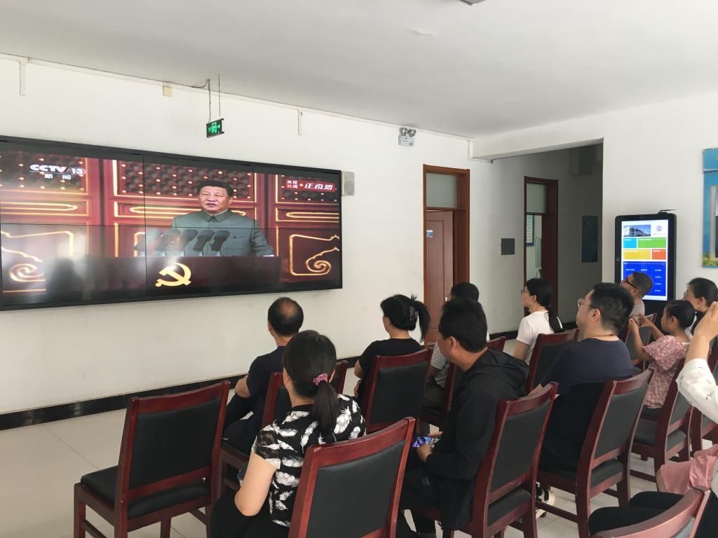 七月的第一天,廊坊電大校園百花盛開,花香鳥語,甬路旁“偉大的中國共產黨萬歲”“全國各族人民大團結萬歲”兩幅鮮紅的標語增添了節日的喜慶氣氛。上午8時,當慶祝中國共產黨成立100周年大會在北京天安門廣場隆重舉行時,廊坊電大第一時間組織全校教職工通過電視、網絡、校園電子顯示屏、廣播等渠道收看收聽慶祝大會直播,認真聆聽習近平總書記重要講話。
