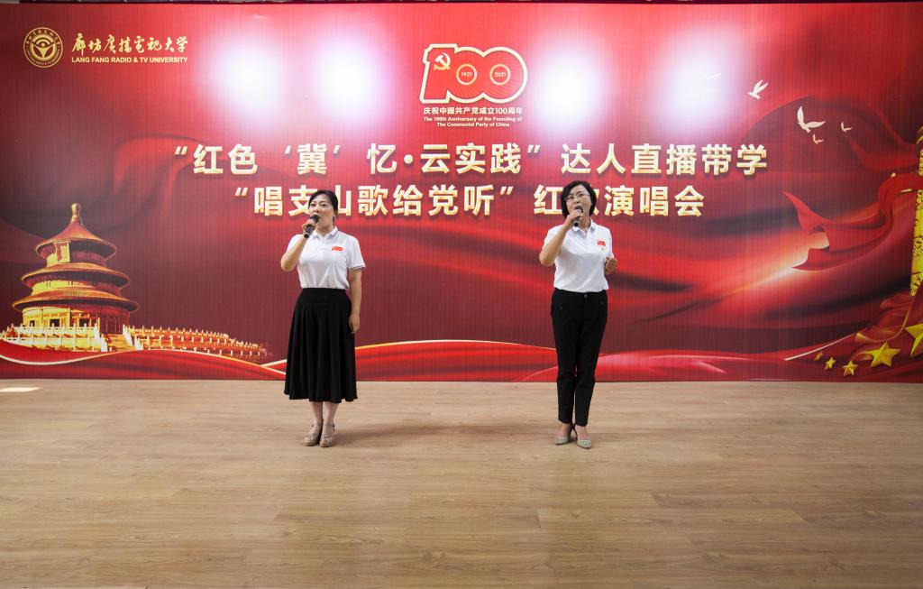 7月6日下午,為熱情謳歌黨的百年光輝歷程和豐功偉績,深情表達廊坊電大人對黨的無限熱愛和美好祝福,廊坊電大通過冀云·融媒體平臺開啟達人直播帶學第三場活動—舉辦“唱支山歌給黨聽”紅歌演唱會。