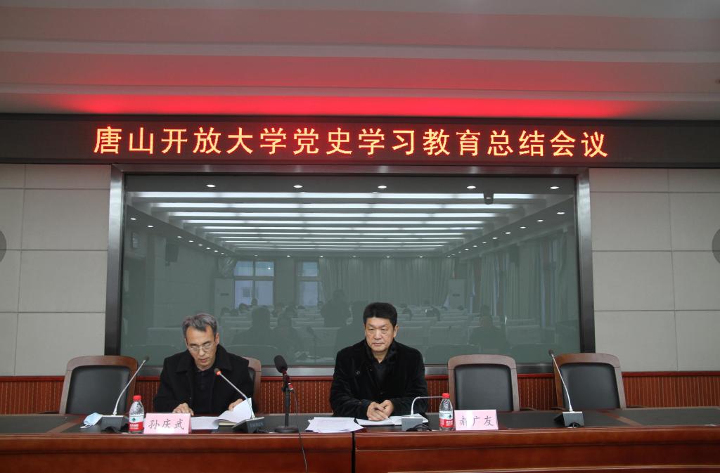 1月15日下午,唐山開放大學在遠教樓三層學術報告廳召開黨史學習教育總結會議。會議采取線上線下相結合的形式同步進行,參加現場會議的有學校黨政領導班子成員、部長以上干部,全體黨員教師通過騰訊會議參加線上會議。會議由黨委副書記孫慶武主持。