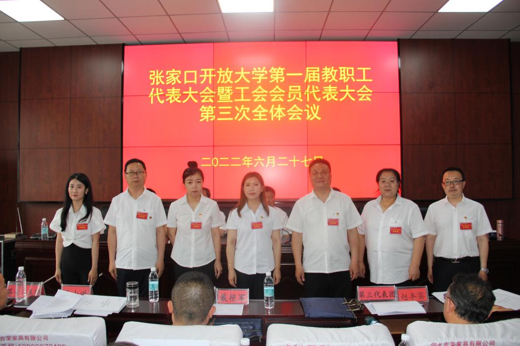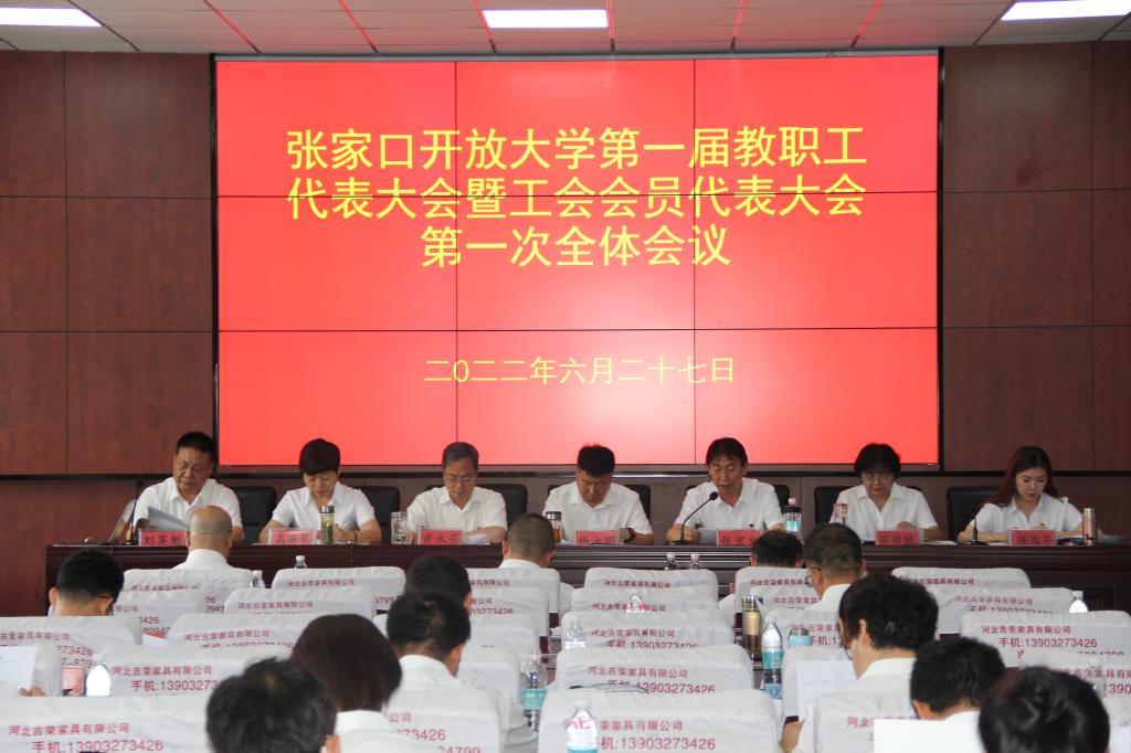6月27日上午9:00,張家口開放大學第一屆教職工代表、工會會員代表第一次會議(以下簡稱雙代會)在學校五號樓三樓第一會議室隆重召開。張家口開放大學黨委副書記、校長張宏文作了學校工作報告,黨委委員、副校長陳瑞芬代表校工會作了工會工作報告。
