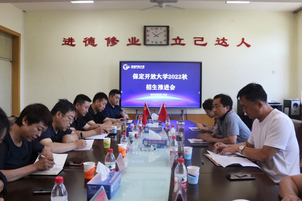近日,保定開放大學系統就2022秋季的招生工作在市校、淶源、滿城、安國分批召開了座談會,調度系統招生工作。保定開放大學校長李樹進、副校長薛玉琪,各縣開放大學校長、主管招生工作的負責同志以及市校全體中層干部參加了會議。