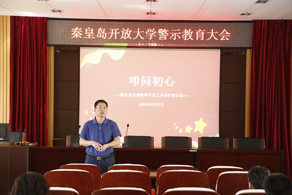 最后秦皇島開放大學黨委書記、校長趙清元講話。他指出:一要引以為戒,時刻保持清醒。務(wù)必以警示教育片中的反面典型為鏡,防微杜漸、警鐘長鳴;二要嚴格自律,從我做起。不斷增強責任意識和風險意識,嚴守紀律規(guī)矩,以更強的責任擔當和更好的作風建設(shè)扎實做好本職工作。三要深入推進全面從嚴治黨。積極推動“兩個責任”落實,學校領(lǐng)導(dǎo)班子成員及科級領(lǐng)導(dǎo)干部要認真履行“一崗雙責”,抓好分管部門全面從嚴治黨工作,學校紀委要切實做好監(jiān)督檢查工作,對發(fā)現(xiàn)的典型問題要嚴肅追責問責。