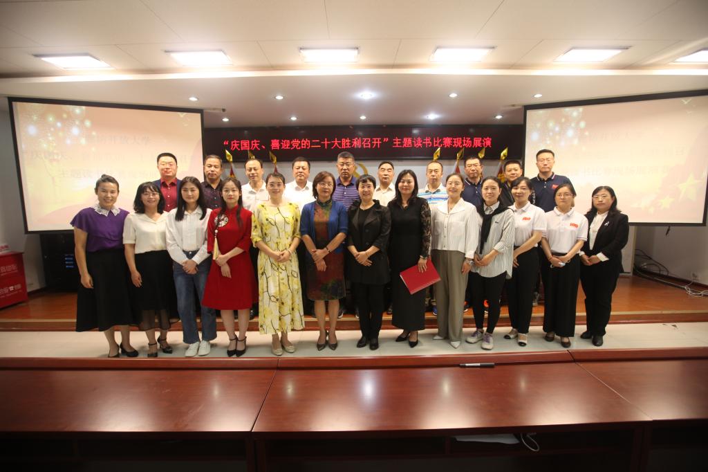 金秋時節,在舉國歡慶祖國73周年華誕之際,按照廊坊市委宣傳部、市委教育工委《關于深入學習貫徹習近平總書記致信首屆全民閱讀大會賀信精神 奮力做好新時代全民閱讀工作的通知》要求,為深入推進全體師生閱讀工作,展現開放大學積極向上的精神狀態,營造黨的二十大勝利召開濃厚氛圍,9月30日上午,廊坊開放大學在三樓報告廳隆重舉辦“慶國慶 喜迎黨的二十大勝利召開”主題讀書比賽現場展演活動,全校師生共饗閱讀盛宴。