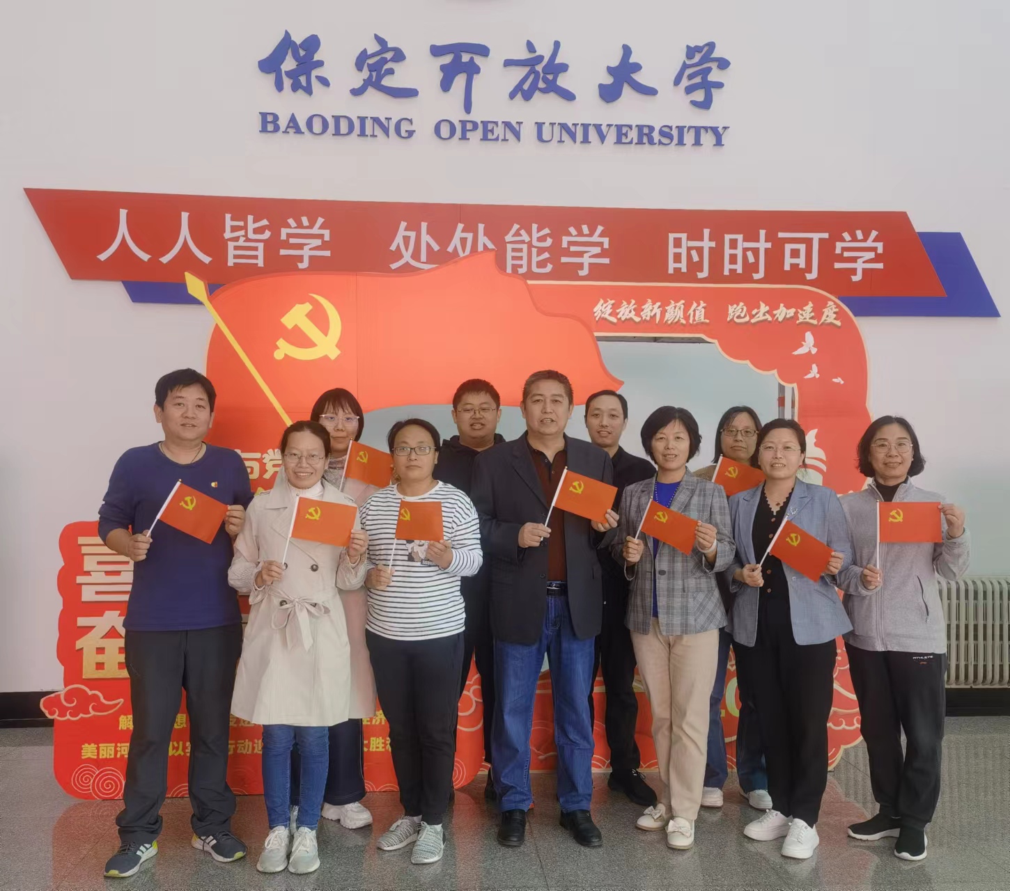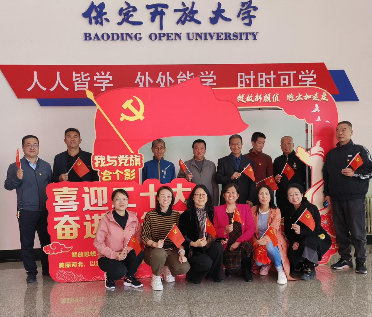 為迎接黨的二十大勝利召開,激勵全校黨員不忘初心、牢記使命,近日,保定開放大學開展“我與黨旗合個影”主題活動,引導全體黨員厚植愛黨、愛國、愛社會主義的情感,展示“請黨放心,強國有我”的精神風貌,用實際行動夯實黨員對黨忠誠的政治底色。
