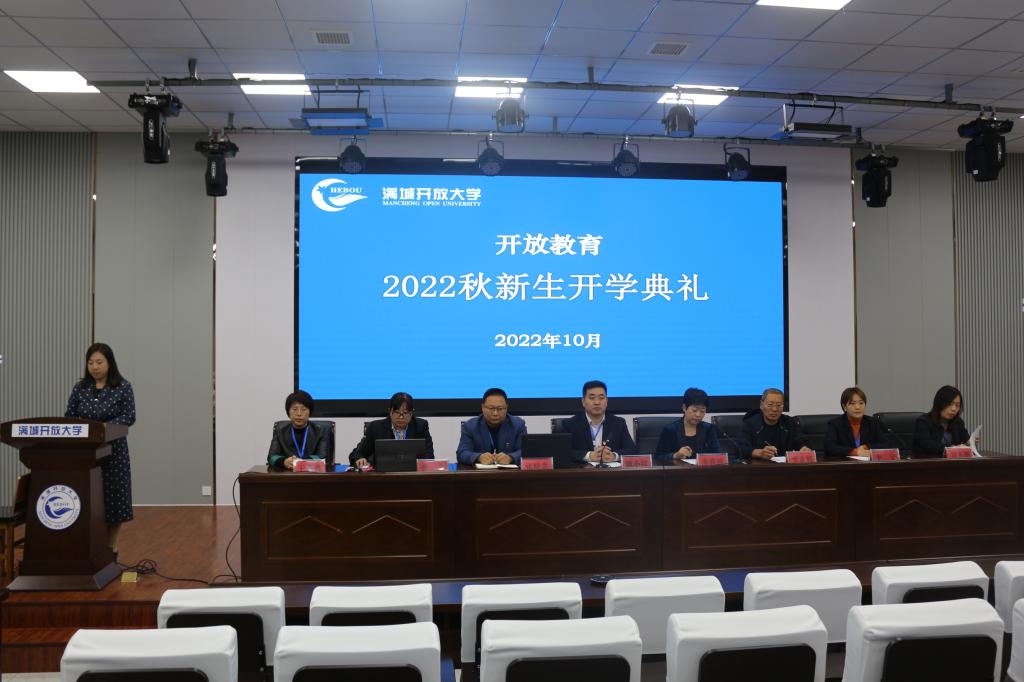 10月28日上午,滿城開放大學舉行2022年秋季開放教育新生線上開學典禮。滿城開放大學校長康小江、副校長朱喜愛出席典禮并致辭,五名新生班主任與22秋400余名新生學員參加了開學典禮。