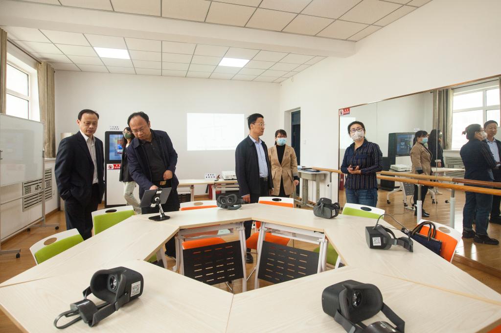 王凱旖一行人首先對我校沙盤、書畫、鋼琴、瑜伽、舞蹈、烘焙、VR等老年教育體驗室進行了實地查驗,詳細了解了我校老年教育基礎設施、硬件建設、課程建設、教學組織、教學管理、師資配備等方面的實際情況。呂中戰在陪同查驗的過程中,對我校老年教育機構建設、辦學概況、政策制度保障、支持服務體系、辦學成果以及我校老年教育未來發展規劃和前景等進行了具體匯報。