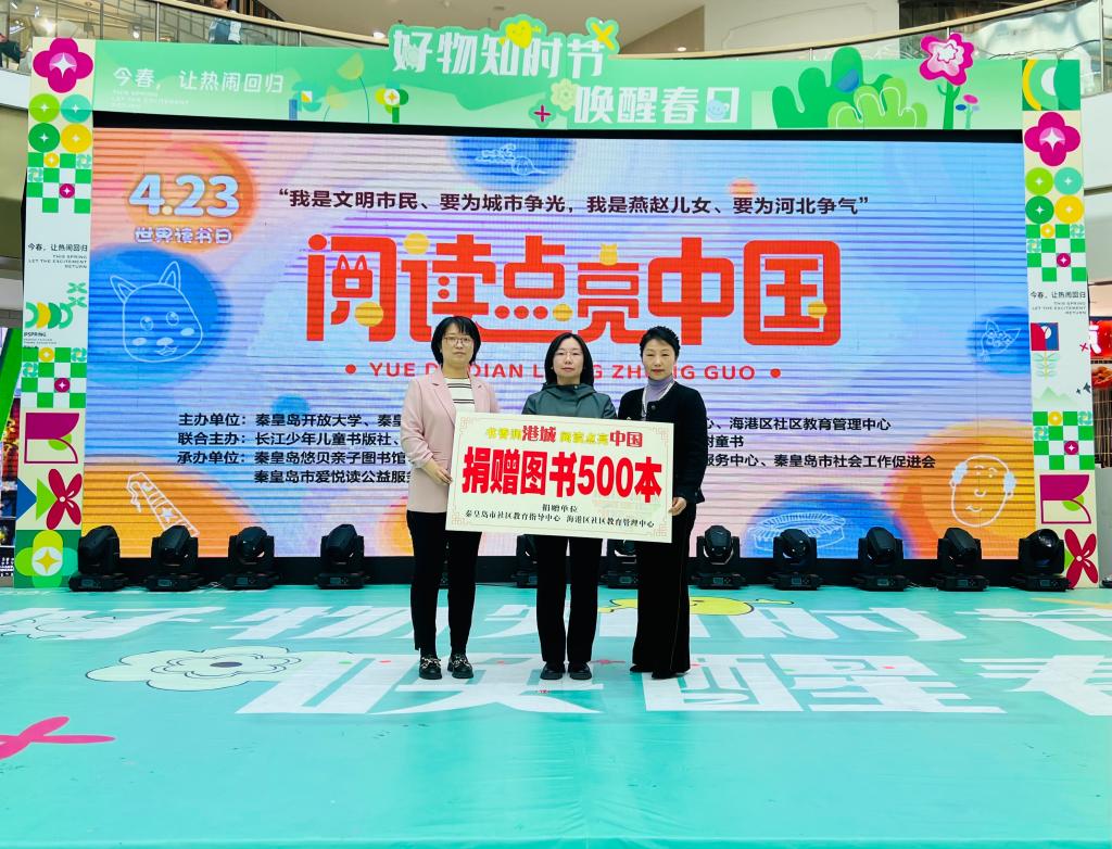 4月23日是第28個“世界讀書日”,由秦皇島開放大學、秦皇島市文化藝術中心、秦皇島市婦女兒童活動中心、海港區社區教育管理中心共同主辦的“閱讀點亮中國”全國大型公益活動在秦皇島萬達廣場舉行。100余組家庭應邀參與活動,首府社區獲贈圖書500冊,30余名小青檸志愿服務聯盟大學生志愿者為活動提供服務保障。