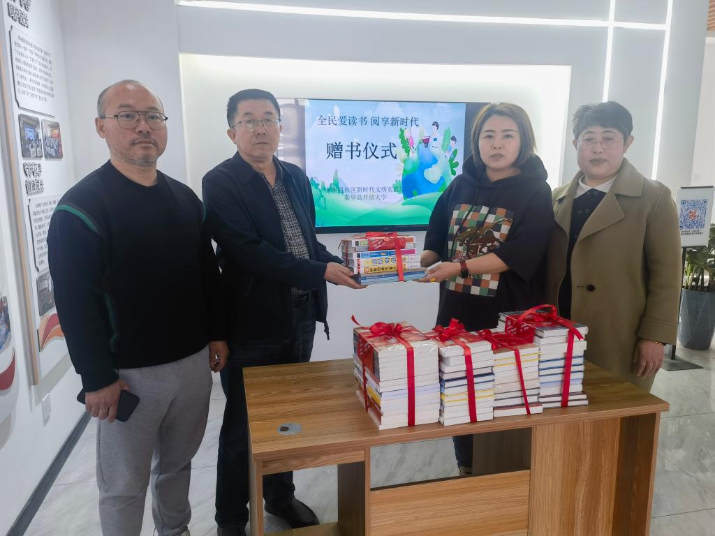 本活動進行的同時,秦皇島開放大學社區教育辦公室主任胡海洋代表秦皇島開放大學為海港區東華里社區捐贈圖書500多本。
