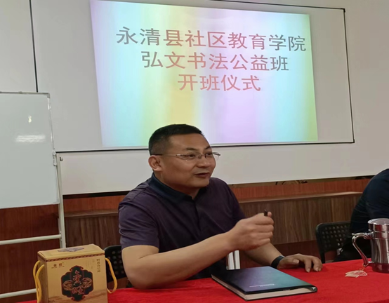 5月11日上午,弘文書法公益班在永清縣社區教育學院(永清開放大學)正式開班。