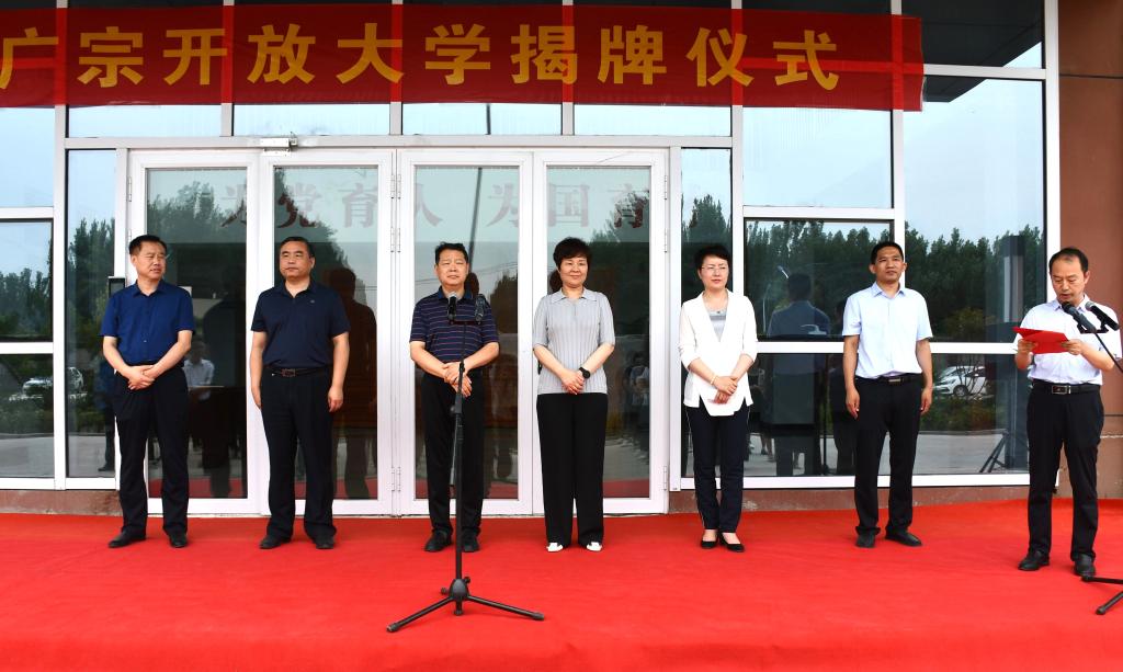 6月28日,廣宗開放大學舉行揭牌儀式。廣宗縣委書記李行軍和邢臺開放大學校長劉彥君共同為新校名揭牌。