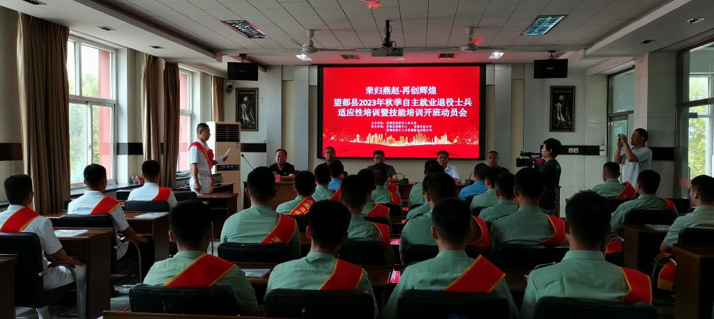 為幫助退役士兵事業(yè)轉(zhuǎn)型、工作接軌,積極投身到地方經(jīng)濟(jì)社會(huì)建設(shè),9月19日上午,望都縣2023年秋季自主就業(yè)退役士兵適應(yīng)性培訓(xùn)暨技能培訓(xùn)開班儀式在望都縣職教中心實(shí)訓(xùn)樓會(huì)議室舉行。縣退役軍人事務(wù)局局長(zhǎng)周振生、副局長(zhǎng)郄慶杰、二級(jí)主任科員陳奇,縣職教中心常務(wù)副校長(zhǎng)杜文賓、縣開放大學(xué)校長(zhǎng)王永軍及相關(guān)單位工作人員參加了此次動(dòng)員會(huì)。