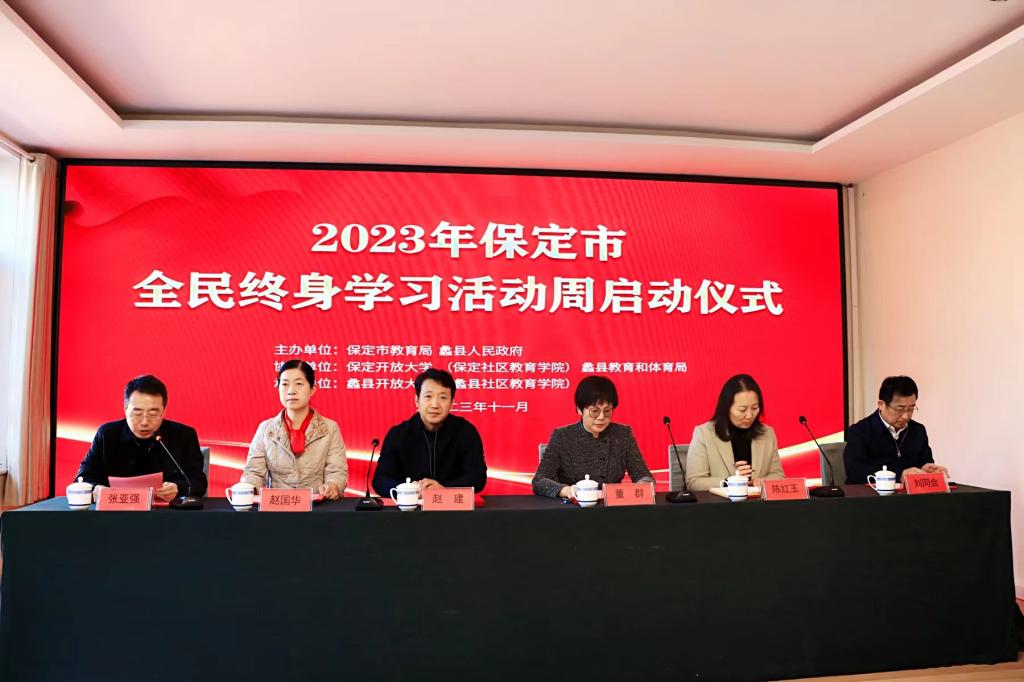 11月17日,2023年保定市全民終身學習活動周啟動儀式在蠡縣開放大學社區教育禮堂舉行。活動由保定市教育局、蠡縣人民政府主辦,保定開放大學、蠡縣教體局協辦,蠡縣開放大學(蠡縣社區教育學院)承辦。保定市教育局副局長董群、職成教處處長劉同會,保定開放大學校長趙建、副校長趙國華,蠡縣人民政府副縣長陳紅玉出席。儀式由蠡縣教體局黨組書記、局長張亞強主持。