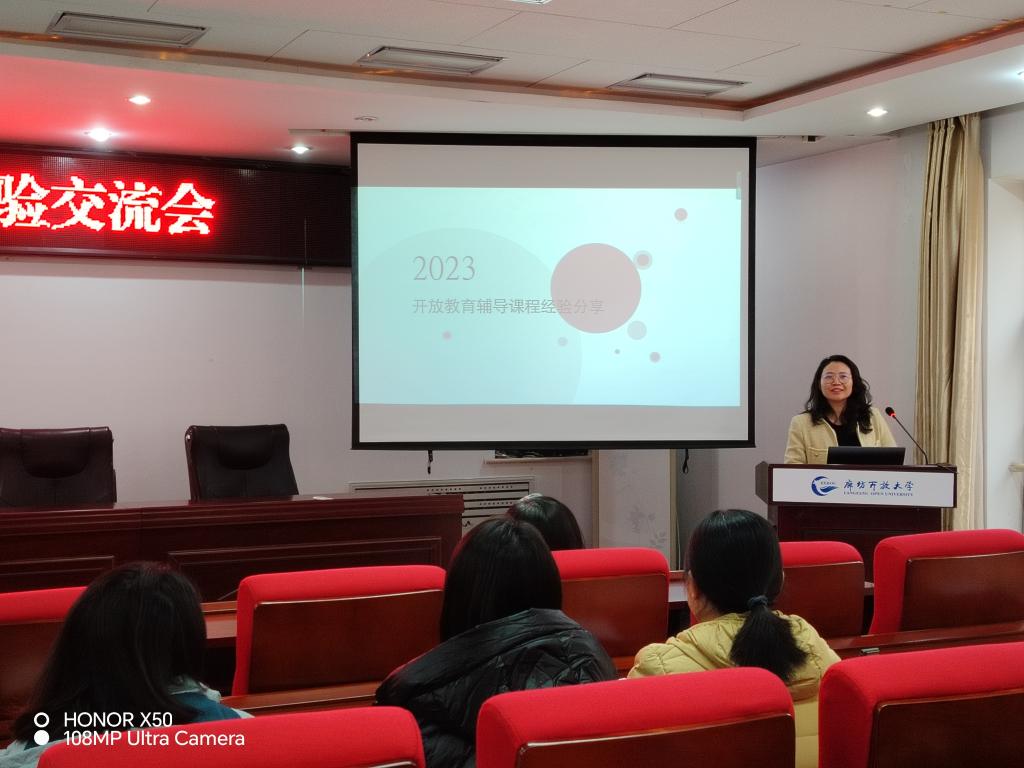 會上邀請了四名優秀教師代表,立足于開放教育的教育理念,與參會教師們進行了經驗分享。四名教師代表分別介紹了自己在精心教學設計、創新教學方法、挖掘思政元素、調動學生互動、充分利用國開學習網、評閱作業及向學生提供考前輔導等方面的經驗和做法。