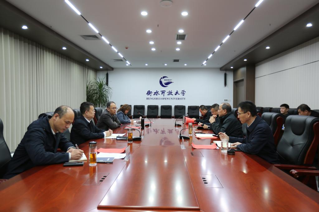 3月27日-28日,河北開(kāi)放大學(xué)黨委副書記、校長(zhǎng)田學(xué)斌,黨委常委、副校長(zhǎng)孫智宏,黨政辦公室副主任龐金,教務(wù)處副處長(zhǎng)史愛(ài)紅一行4人到衡水開(kāi)放大學(xué)調(diào)研。