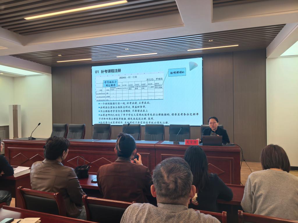 學籍辦詳細解讀了學籍注冊、異動辦理、學生信息修改、形考成績填報、形考查分、畢業審核、學位審核等關鍵環節的政策要求,并結合實例講解了班主任在各個環節實際操作的方法和經驗。