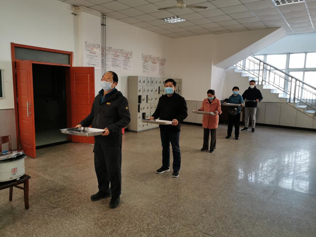 場(chǎng)景三:食堂就餐演練。教職工實(shí)行錯(cuò)時(shí)錯(cuò)峰就餐,按照指示標(biāo)識(shí)指定的路線,保持間隔距離1米以上排隊(duì),有序進(jìn)入食堂。進(jìn)入食堂后保持1米以上安全距離排隊(duì),食堂有專(zhuān)人引導(dǎo)教職工到售賣(mài)窗口領(lǐng)取飯菜。