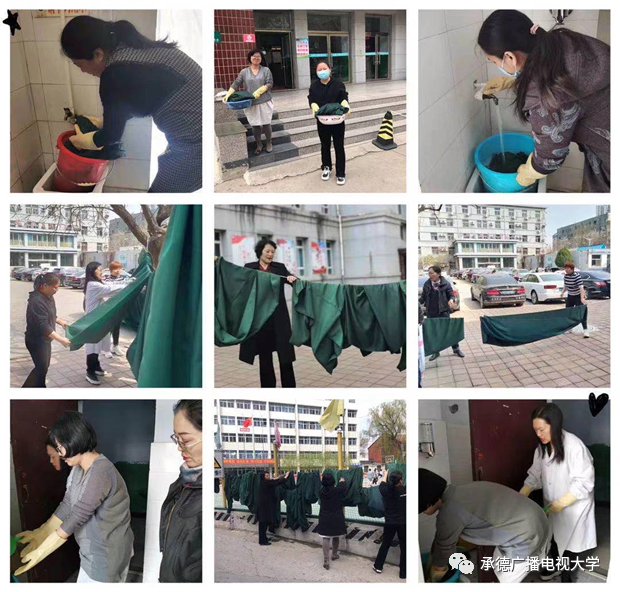 4月9日至4月12日,承德電大第四黨支部在開展學習黨史的活動中,充分立足于理論與實踐相結合,從支部的實際情況出發,聯合開放教育學院部分群眾教師,對教學樓六樓大會議室內的138個桌布進行了清洗。