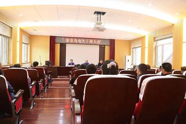 5月27日,秦皇島電大在一樓多功能廳召開干部大會。市委組織部副部長、三級調研員尚海出席會議。學校領導班子成員、各處室系負責人參加會議。市委教育工委書記、市教育局局長劉紅軍主持會議。