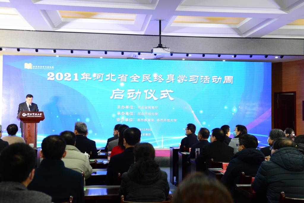 12月9日,以“慶建黨百年華誕 譜終身學(xué)習(xí)新篇”為主題的2021年河北省全民終身學(xué)習(xí)活動周啟動儀式在河北開放大學(xué)舉行。啟動儀式由省教育廳主辦,河北開放大學(xué)承辦,各市教育局、各市開放大學(xué)協(xié)辦。省委宣傳部、省人社廳、省民政廳、省文旅廳、省委老干部局、省婦聯(lián)、團省委、省老齡辦等部門有關(guān)同志,省教育廳高教處、職成處(老年教育處)有關(guān)負責(zé)同志,部分駐石高校、中職學(xué)校領(lǐng)導(dǎo),省成人教育協(xié)會、省社區(qū)教育指導(dǎo)中心負責(zé)同志,河北開放大學(xué)領(lǐng)導(dǎo)班子成員、正處級干部和獲獎?wù)叽韰⒓觾x式。河北省教育廳副廳長張春生出席儀式并講話。河北開放大學(xué)黨委書記籍獻平,黨委副書記、校長段潤保出席儀式,黨委常委、副校長陳軍平主持啟動儀式。