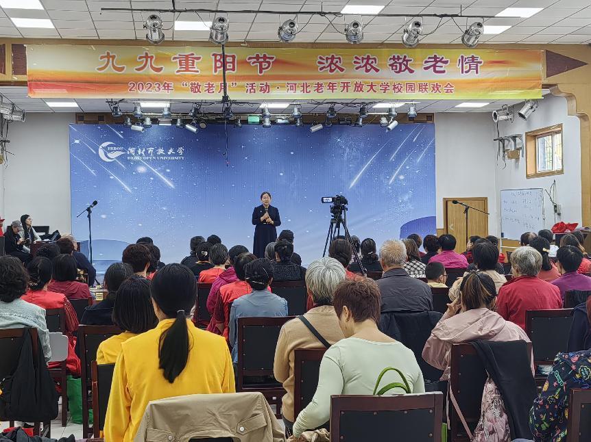 為弘揚(yáng)中華民族傳統(tǒng)文化,促進(jìn)老年人健康快樂(lè)生活,營(yíng)造養(yǎng)老孝老敬老良好社會(huì)氛圍,按照國(guó)家老年大學(xué)2023年重陽(yáng)節(jié)活動(dòng)的相關(guān)要求和學(xué)校“敬老月”系列活動(dòng)安排,河北老年開(kāi)放大學(xué)于2023年10月23日舉辦了“九九重陽(yáng)節(jié) 濃濃敬老情誼——福滿金秋 相約重陽(yáng)”校園聯(lián)歡會(huì)。