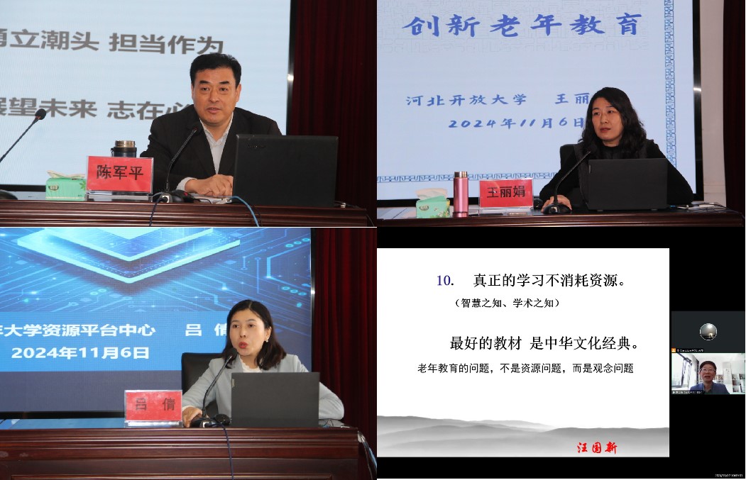 11月4日至8日,國家老年大學河北分部在張家口開放大學成功舉辦了“學習貫徹二十屆三中全會精神,推進河北老年教育高質量發展”教學管理研討活動。來自各市開放大學的社區教育和老年教育主管副校長及主任,40所縣級試點校負責人,首屆河北省老年教育教學創新大賽的獲獎教師代表,以及河北老年開放大學教學點管理人員代表等80余人參與了此次研討。